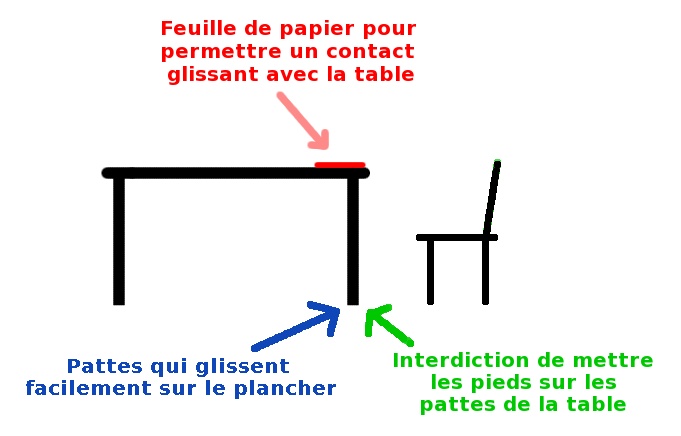 Expérience #1: table rectangulaire avec pattes glissantes et papier sous les mains