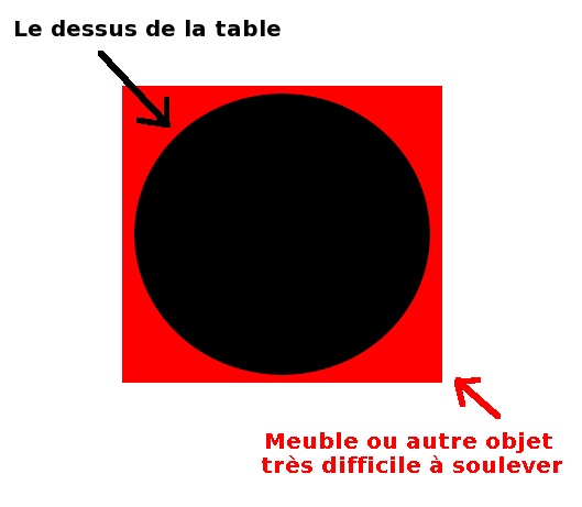 Expérience #4: la surface de la table au sol ou sur un meuble très lourd